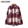 MOYATIIY Women Fashion Autumn Coats 2021 New Spring Autumn Wear Woolen Cloth Overcoats 18 Colors Pliad Cross Casual Female Tops