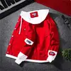 Hooded Basic Coat Bombers Vintage Fabric Patchwork Denim Jacket Women Cowboy Jeans Autumn Frayed Ripped Hole Jean Jacket