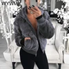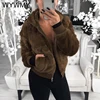 WYWMY Faux Fur Coat Women Hooded Jacket High Waist New Fashion Casual Slim Black Red Pink Faux Fur Jacket Fake Rabbit Fur Coats