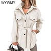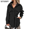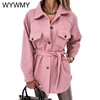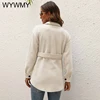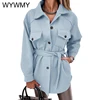 WYWMY Light Blue Woolen Coat Women Autumn Jacket Lapel Lace Up Wool Coat Female Elegant Medium Long Winter Overcoat for Women