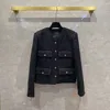 Autumn New Designer Women's High Quality Wool Tweed Coat Chic V-neck 4 Pockets Jackets C982