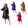 2021 solid color female PU leather lapel long sleeve leather jacket women's fashion waist long leather jacket with belt