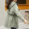 Women's Casual Windbreaker Jackets Mid-length Casaco Feminino 2021 Spring Autumn New Loose Waist Hooded Coat Outerwear Female