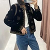 French Women New Black printing Simplicity Loose Jacket Female Round Neck Long Sleeves Coat Chic Top