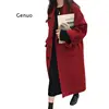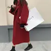 Autumn Winter Long Women Red Woolen Coat Korean Style Solid Single-Breasted Elegant Thicken Female Outwear Casacos Feminino