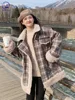 FAKUNTN Lamb wool down cotton padded jacket women's Korean loose winter plaid jacket cotton clothes coat