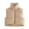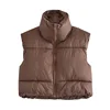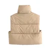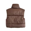 FAKUNTN Women Fashion Zip-up Cropped Padded Vest Coat Vintage High Neck Adjustable Hem Female Waistcoat Chic Tops