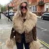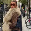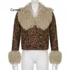 Leopard Print Plush Stitching Woven Single-Breasted Jacket Jacket Women Fall 2021 European and American Street Style New Style