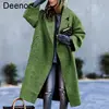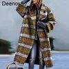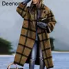 Deenor Winter Coat for Women Plaid Print Warm Wool Cardigan Elegant Turn-down Collar Outwear Office Lady Single Button Coat