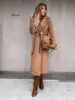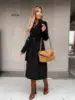 2021 European and American Pure Color Autumn and Winter Simple Long-Sleeved V-Neck Tie Woolen Coat Top Women's Clothing