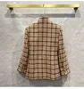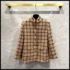 Spring France Style Women's High Quality Designer Wool Plaid Tweed Jackets Chic Stand Collar Vintage Coat F037