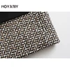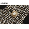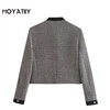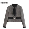 MOYATIIY Women 2022 Fashion Crop Tweed Blazer Coat with Bow Tie Vintage Office Ladies Single Button Long Sleeve Female Tops