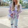 2021 autumn and winter women's new beauty fashion plaid printed long-sleeved cardigan single-breasted casual jacket