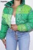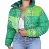 Women's Winter Long Sleeve Zip Puffer Jacket Baggy Short Color Print Down Coats