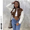 Brown Varsity Baseball Fashion Fall Jackets For Women 2022 Patchwork Black Crop Top Jackets Coats Red Varsity Bomber Jacket