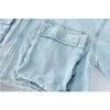 Short Denim Shirt With Tooling Pockets Women Spring Autumn Outerwear Hong Kong Style Loose Cardigan Zipper Coat All-match Casual