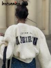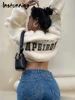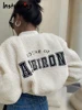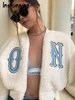 Instunning Women Letter Embroidery Wool Cropped Top Casual Warm Long Sleeve Zipper Streetwear Daily Female Elegant Chic Jacket