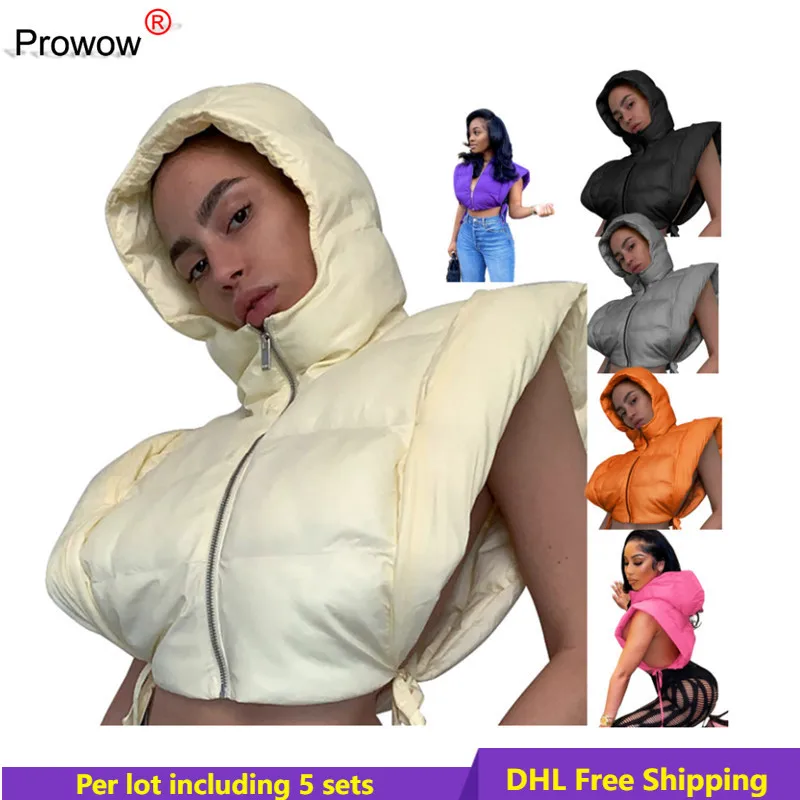 PROWOW Winter Solid Color Hooded Bread Jacket Sleeveles Vest Casual Parkas Street Style Hooded Puffer Zipper Waistcoat DHL 6900