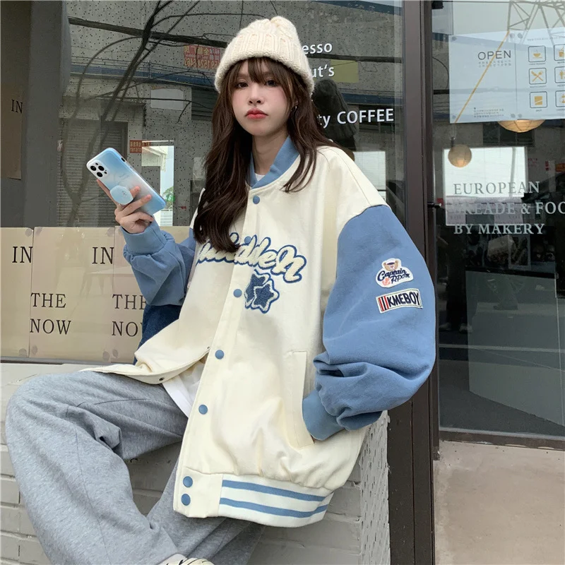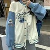 Baseball Jacket Women Bomber Coat Long Sleeve Letters Embroidery Loose Comfortable Sports Uniform Coat Female