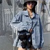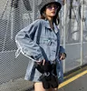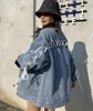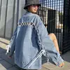2022 Spring New Women Denim Jacket With White Straps And Bow Stitching On The Back Tide Street Female Oversized Cowboy Coats Ins