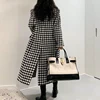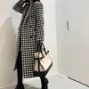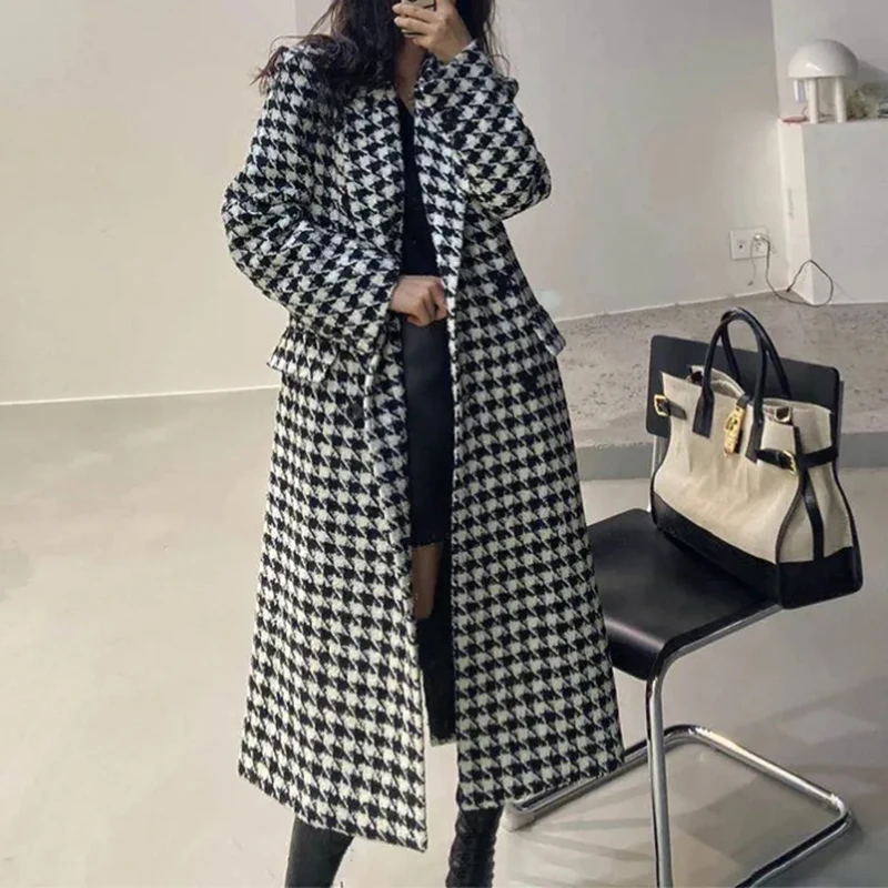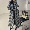 Fashion Houndstooth Woolen Coat Woman Winter Thick and Warm Long Ladies Coat Autumn Casual Suit Collar Women's Top Clothes 2022