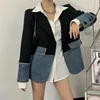 Spliced Denim Blazer Women Chic Niche Tops Single Button Korean Loose Blazer Mujer 2022 Spring Casual Blazer