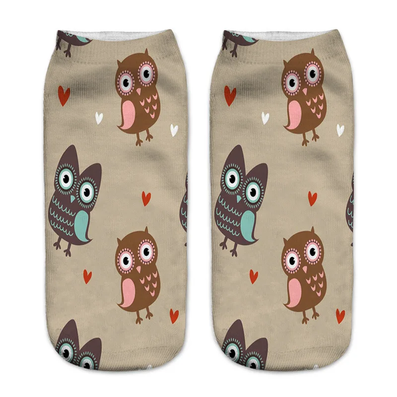 2022 New Meias Summer Autumn Harajuku Owl Socks 3D Print Animal Women's Low Cut Ankle Socks Cat Printed Socks Special gifts