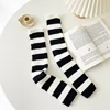 Japan Style Black White Striped Knit Long Socks Women Outdoor Knee High Elastic Leg Warmers Winter Slim Hip-hop Punk Rock Socks
