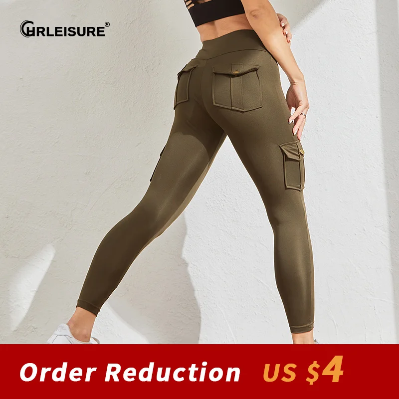 CHRLEISURE Woman Fitness Leggings Pocket High Waist Booty Lifting Pants Seamless Push Up Work Out Leggings Pants