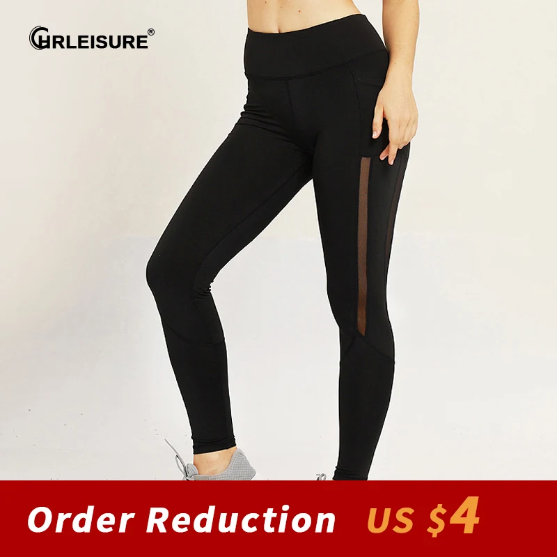 CHRLEISURE Women Leggings High Waist Fashion Elastic Pocket Mesh Breathable Fitness Legging Push Up Patchwork Workout Legging