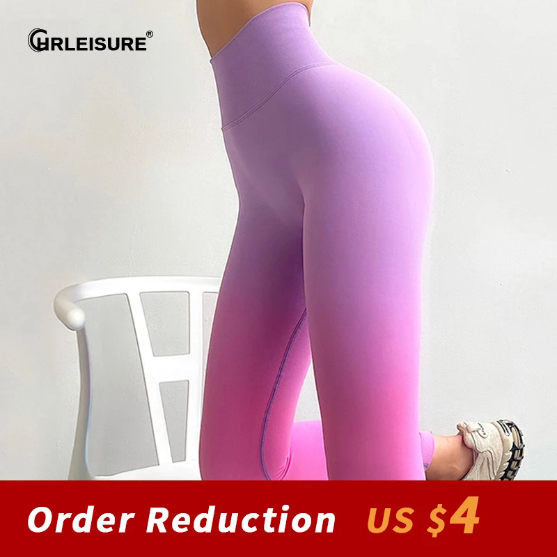 CHRLEISURE New Gradient Seamless Leggings High Waist Push Up Fitness Leggings Sexy Slim Workout Running Elasticity Sports Pants