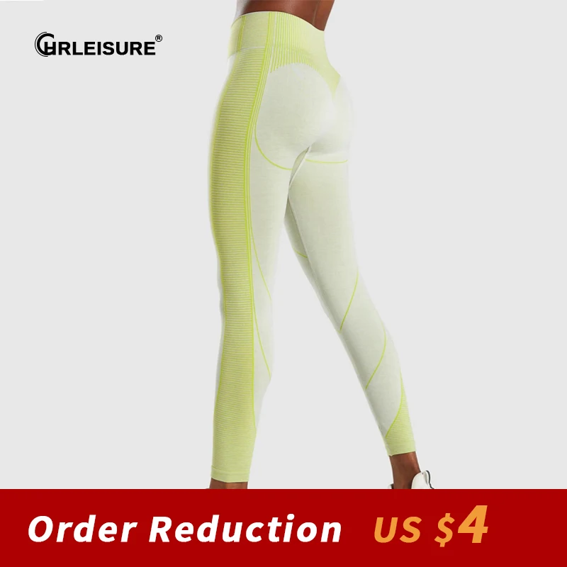 CHRLEISURE Women High Waist Leggings Seamless Fitness Push Up Leggings Sports Stretch Workout Pants Tummy Control Sport Leggings