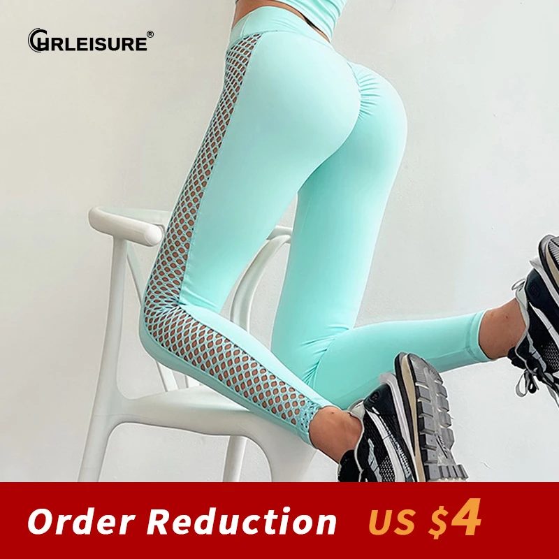 CHRLEISURE Workout Push Up Leggings Women Seamless Sexy High Waist Mesh Quick Dry Leggings Gym Fitness Running Sports Pants