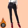 FAKUNTN autumn and winter new plus velvet thick fake two-piece culottes lace skirt mid-high waist slimming oversize leggings