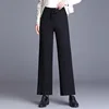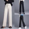 FAKUNTN Autumn & Winter New Elastic Waist Casual Knitted Wide Leg Pants High Waist Slim Simple Women Harem Long Pants