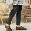 FAKUNTN Autumn and Winter Womens Retro Asymmetric High Waist Elastic Waist Leggings Sweet Mori Girl Lace Embroidery Sknny