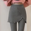2021 Autumn Winter Leggings Women Fake Two Pieces Ruffles Skirt and Leggings Thicken Velevt Warm Soft Casual Pants High Quality
