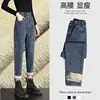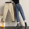 Streetwear Warm Winter Velvet Jeans Woman 2021 Korean Fashion Harem Elastic High Waist Pants Student Baggy Casual Denim Pants