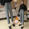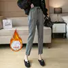 2021 Winter Warm Harlan Pants Women Plus Velvet Thickening Pants Korean Casual Trouse Woolen Houndstooth Pants St Penpps