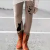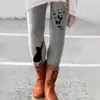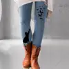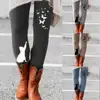 Women Long Pants Elastic Skinny Pants Casual Leggings Skinny Waistband Cats Butterflies Print Pants