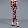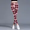 Female Fitness Leggings Women Print Plaid Leggings Lady Sexy Slim Pencil Pants Push Up Elastic Waist Trousers