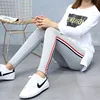 2021 Quality Cotton Leggings Side Stripes Women Casual High-stretch Leggings Pants High Waist Fitness Leggings Female