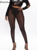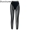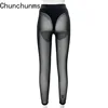 2022 Summer Sexy Mesh Perspective Club Black Leggings With Underwear Sporty Fitness Sweatpants Stretch See Through Slim Capris