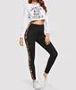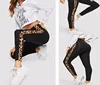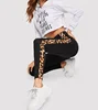 Summer Black Lady Leggings with Leopard Stripe Trim Yoga Pants Women High Waist Leggings Fitness Clothes High Stretch Legging