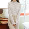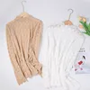 Sexy Tulle Lace Womens Blouses Transparent Mesh Basic Long Sleeve Top Mock Neck Solid Color Embroidered Floral Lace Tops