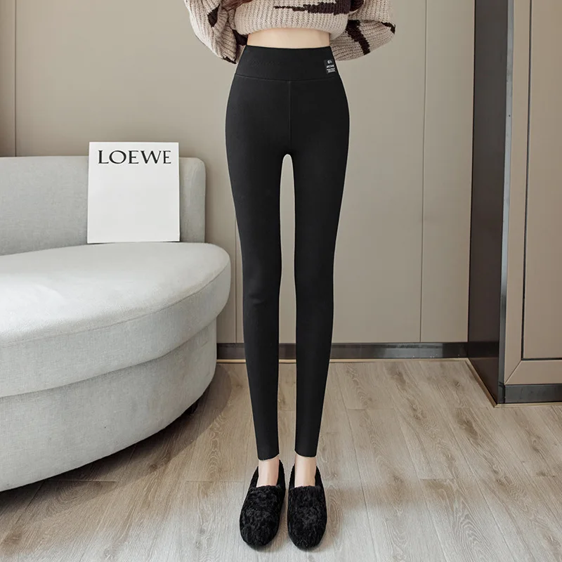 Winter Slim Warm Women's Trousers Cotton High Waist Thick Abdomen In Outdoor Fleece Vertical Stripe Lolita Fashion Leggings