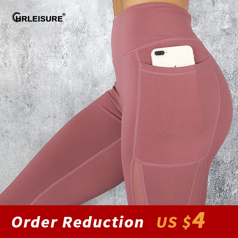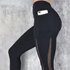 CHRLEISURE Pocket Leggings Women Mesh Splicing Casual Pants Solid Breathable Women High Waist Push Up Fitness Gym Leggings