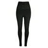 Sexy High Waist Slim Leggings Women Fitness Workout Solid Black Pants with Button Casual Elastic Push Up Compression Jeggings
