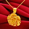 Women's Ancient French Single Pendant Multilayer Large Flower 24k Gold Plated Traveling Memorial Necklace