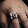 Apinje Skull Ring for Men 925 Silver Rings Golden Skeleton Head Brass Rock Man Jewelry